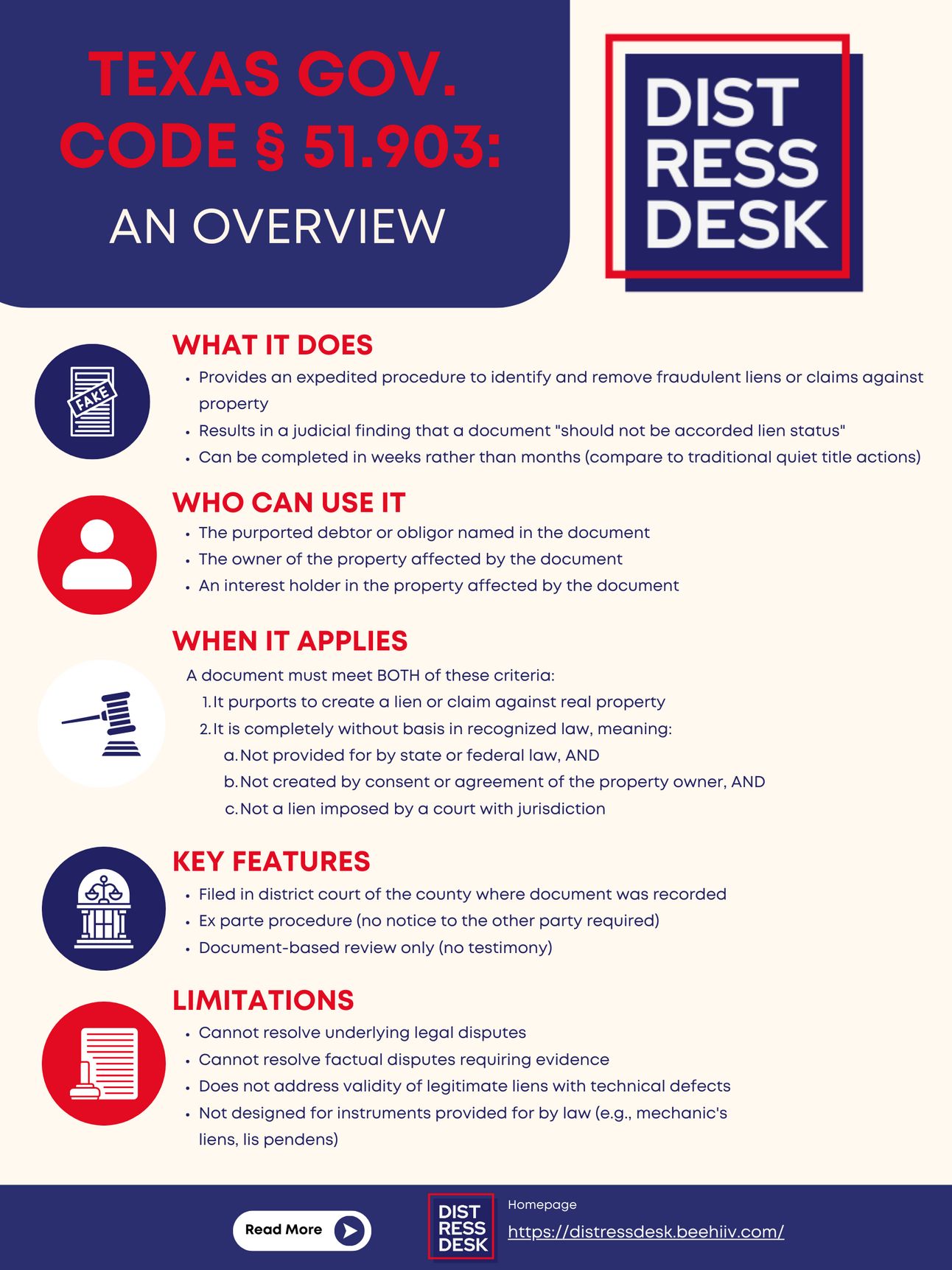 - Texas Gov't Code § 51.903: Invalidating Fraudulent Title Documents